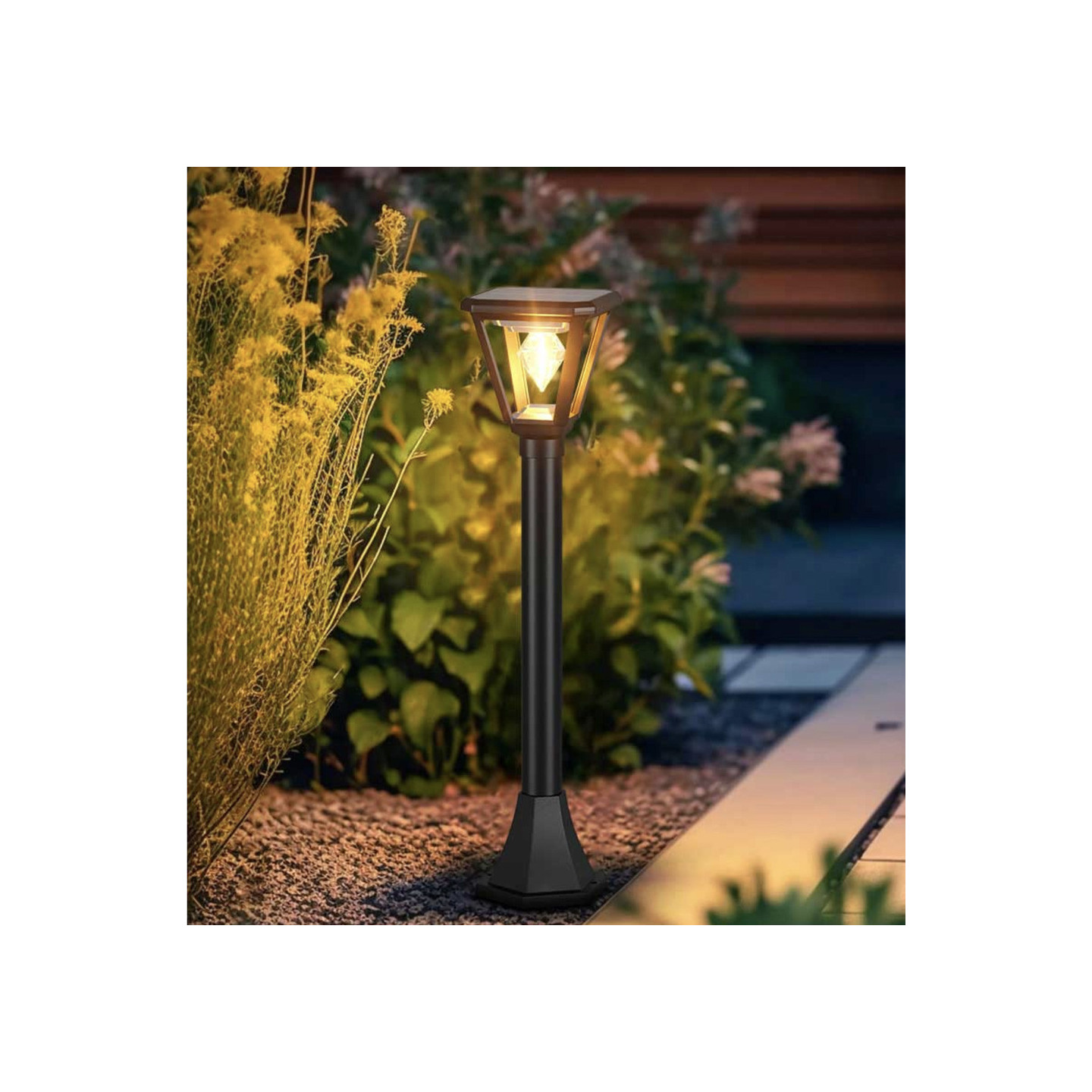 كشاف حديقة طاقة شمسية شكل الجوهرة مع عامود